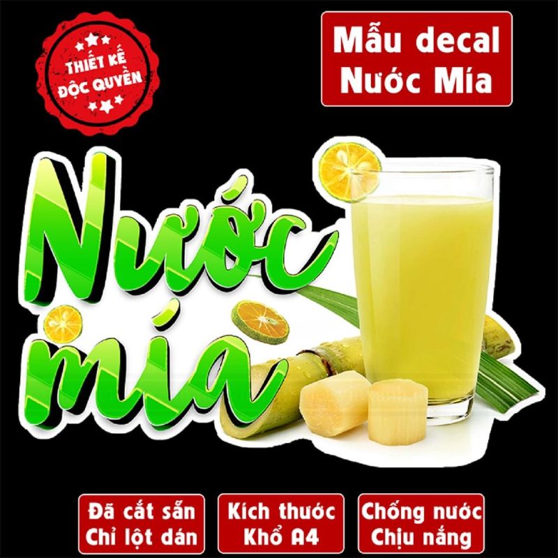 Decal NƯỚC MÍA trang trí quán nước, xe đẩy, dán tường, tủ kính,cao cấp chống nước- A4 cắt sẵn chỉ cần lột dán Decor Đồng