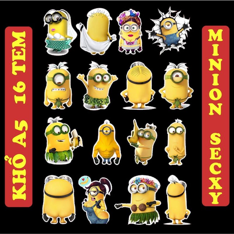 Sticker Minion độc đáo 16 miếng sexy loại Chống nước cao cấp Dán Nón Bảo Hiểm,Laptop,Vali ,điện thȯại , Dán Máy Tính