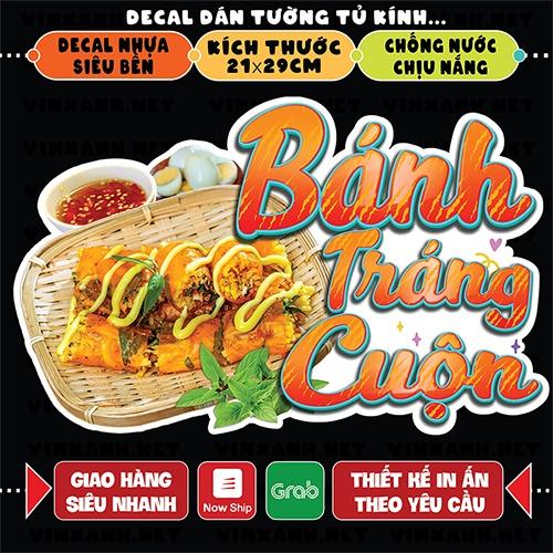 Decal BÁNH TRÁNG CUỘN trang trí quán nước, dán tường, tủ kiếng chống nước, đã cắt bế sẵn khổ A4