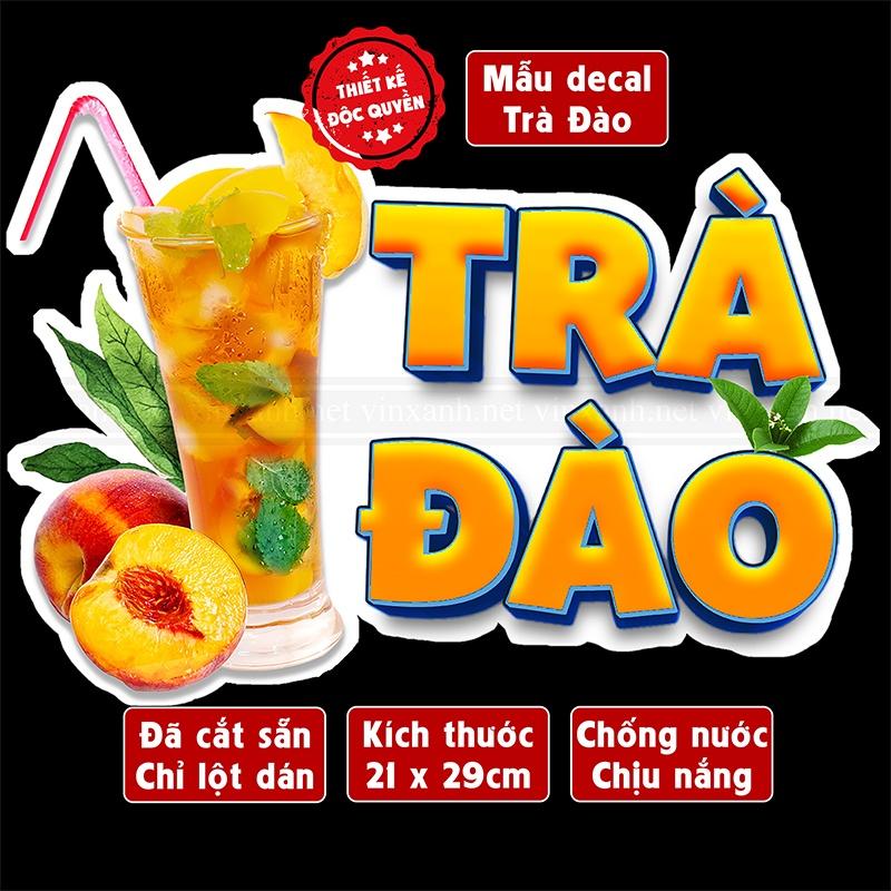 Decal TRÀ ĐÀO trang trí quán hình ly trà dâu, sinh tố, cà phê, rau má, trà sữa,Sticker, Decal dán tường, tủ, kính…