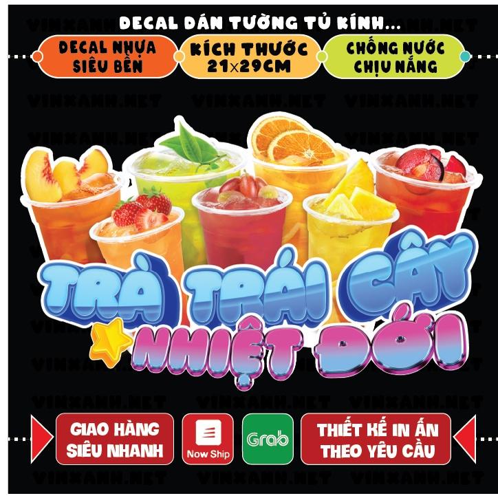 Decal TRÀ TRÁI CÂY NHIỆT ĐỚI trang trí quán nước, dán tường, tủ kiếng chống nước, đã cắt bế sẵn khổ A4